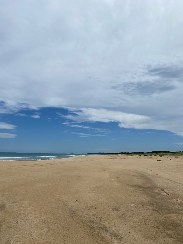 Fiona Beach is also of interest due to the murkiness of its boundaries. At some completely unmarked point, Submarine Beach – itself a long and remote beach – becomes Fiona Beach, which feels especially arbitrary given that Fiona Beach is virtually inaccessible anyway, completely uninhabited, and merely a continuation of the same broad stretch of sand running down to Big Gibber Head. Beachsafe tells me it is 8.8km in length, and I can attest that it does indeed feel long and remote.