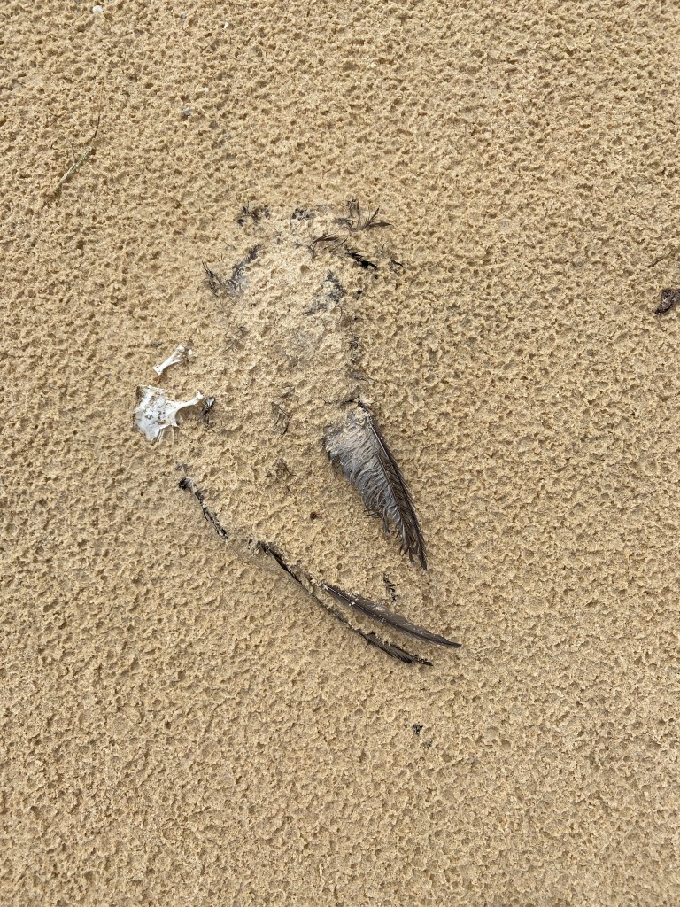 Similar wave action must also be responsible for the countless dead seabirds that also cover this shore. These are birds of not inconsiderable size, but they are largely buried; bodies almost hammered into the sand with only a single desiccated wing or foot betraying their resting place.
